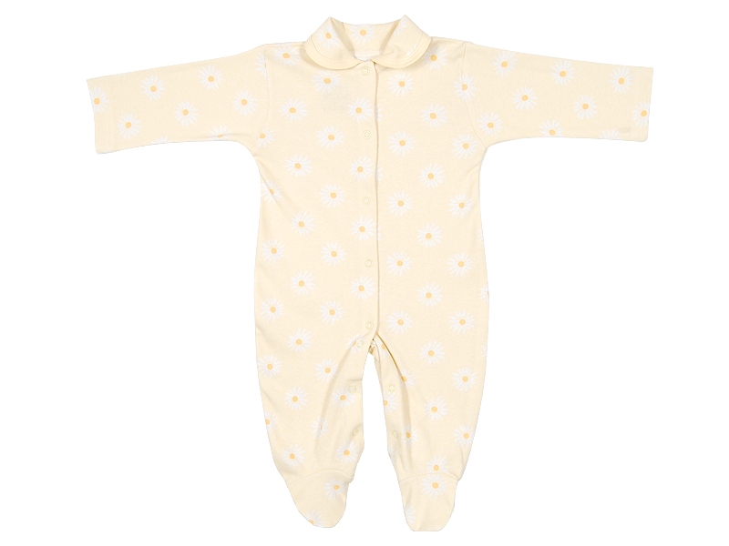 Комбинезон из трикотажного полотна (интерлок) с отложным воротником. Рукава длинные, застёжка на кнопки по переду и по внутреннему шву (для удобной смены подгузника).