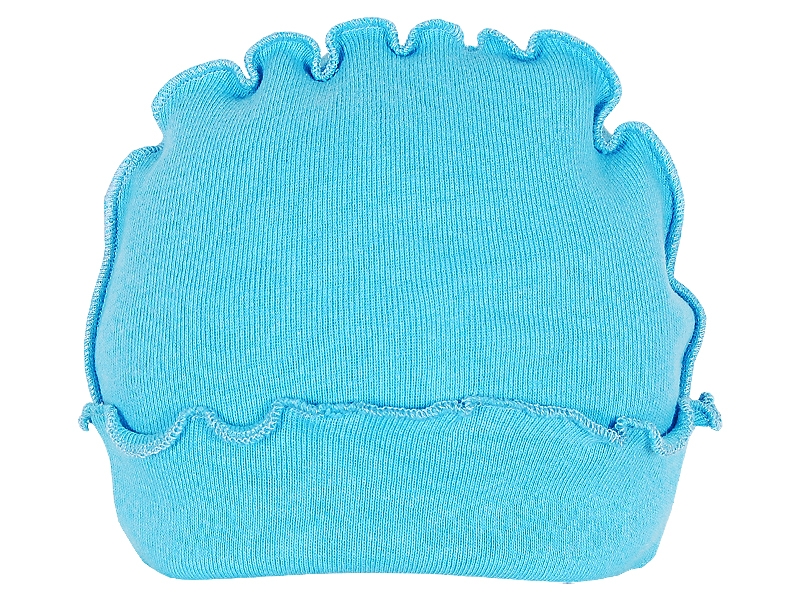 Шапочка из эластичного трикотажного полотна (ластик). Низ шапочки с отворотом. Швы отделочные на лицевую сторону.