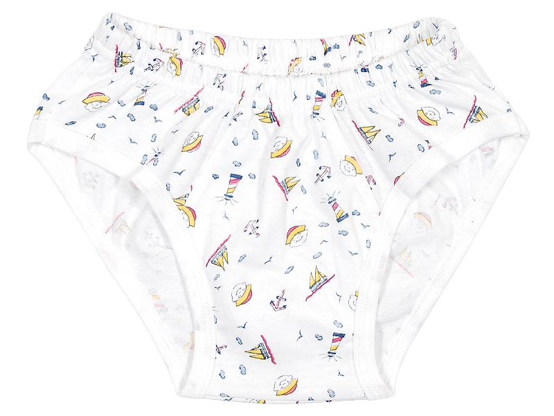 Трусы для мальчика из тонкого трикотажного полотна (кулирка) на резинке, с ластовицей. Вырезы ножек обработаны бейкой.