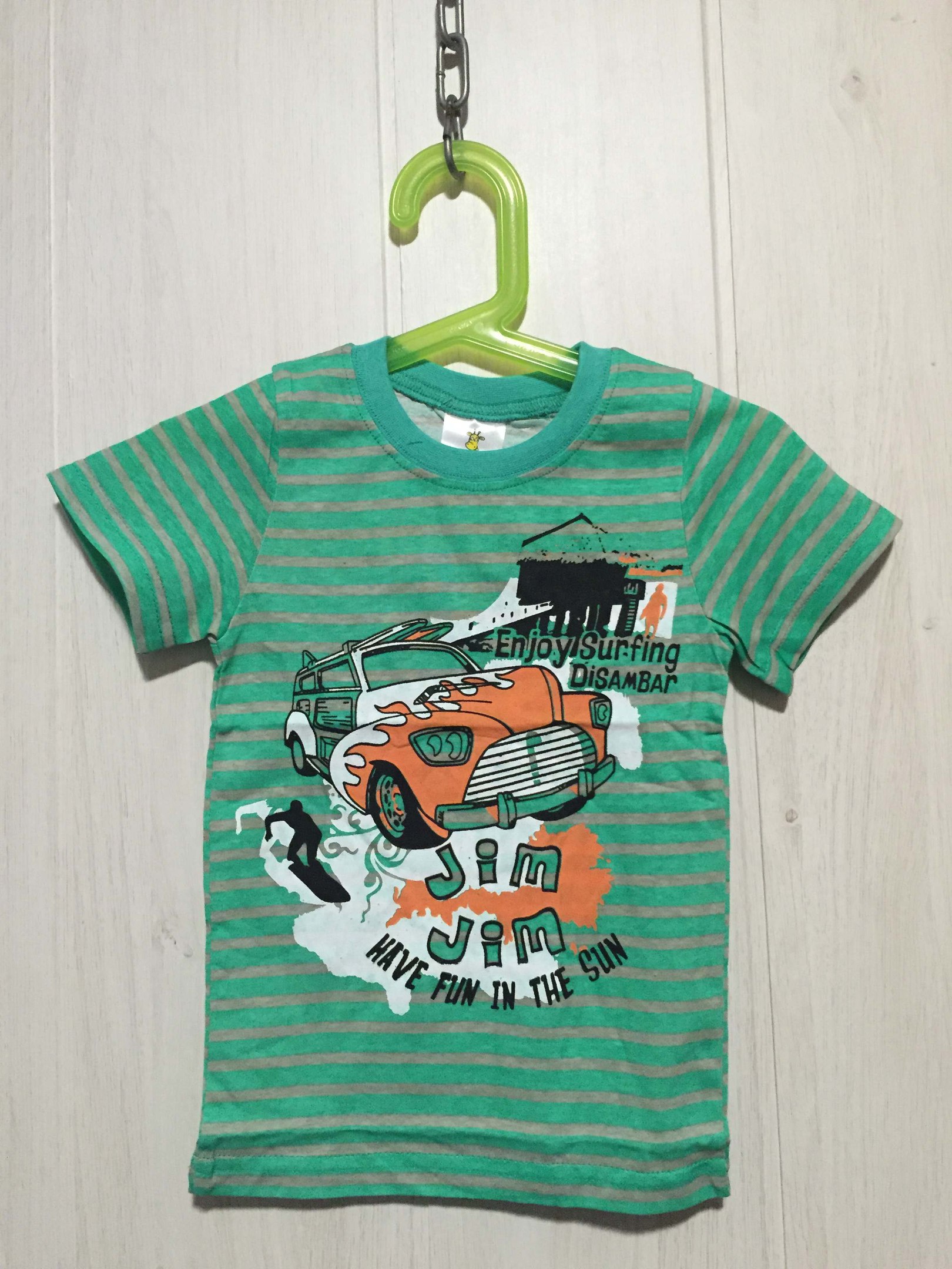рис Машинка на серо-зеленой полоске
