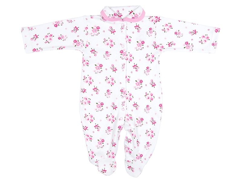 Комбинезон из трикотажного полотна (интерлок) с отложным воротником. Рукава длинные, застёжка на кнопки по переду и по внутреннему шву (для удобной смены подгузника).