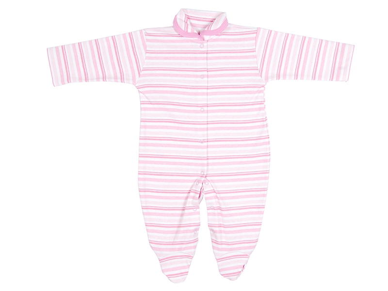 Комбинезон из трикотажного полотна (интерлок) с отложным воротником. Рукава длинные, застёжка на кнопки по переду и по внутреннему шву (для удобной смены подгузника).