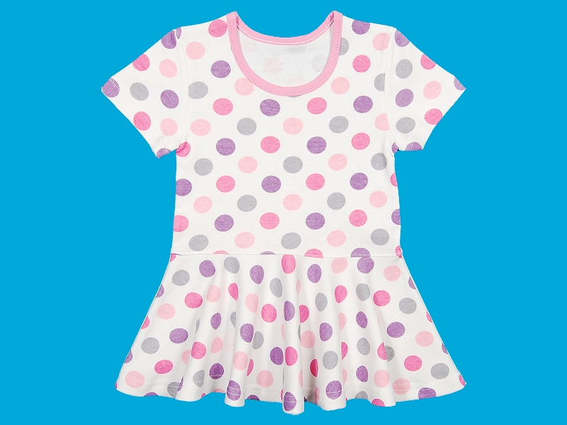 Платье из трикотажного полотна (интерлок) с заниженной линией талии и коротким рукавом. Горловина закругленная, юбка- "солнце".