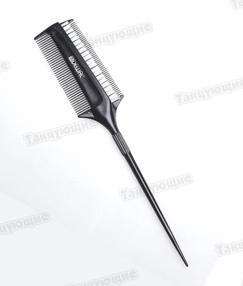 Расческа с пластиковым хвостиком, черная с белой нейлоновой щетиной.