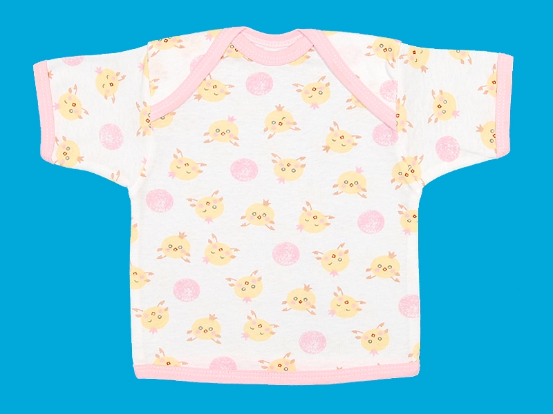 Фуфайка из тонкого трикотажного полотна (кулирка). Короткие рукава, запах по горловине.
