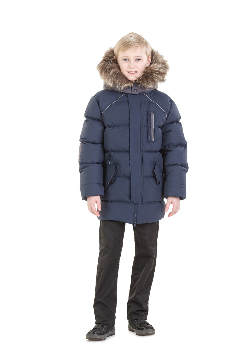 Удобная куртка-парка с мехом для мальчика. Модель прямого силуэта с застёжкой на молнию, закрывающаяся планкой. Четыре функциональных прорезных кармана на переде смотрятся стильно благодаря их несимметричному расположению. Руки от холода защищают плотные манжеты из приятного на ощупь трикотажа. Светоотражающие элементы для безопасности. Комфортная модель на каждый день.
