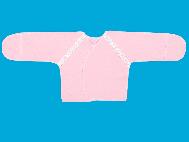 Тёплая распашонка из фланели с запахом по переду, выполнена швами на лицевую сторону. Рукав длинный, отрезной по переду с отделкой из узкого х/б шитья, с закрытыми ручками. При отгибании нижней детали получается открытый рукав