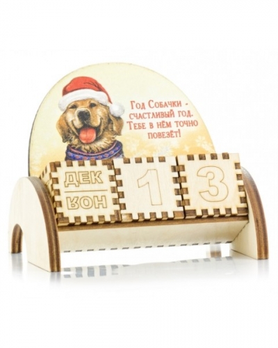 Деревянный большой настольный календарь с символом 2018 года "Лабрадор: Год Собачки-счастливый год. Тебе в нём точно повезёт!" Прямая цветная печать: не выгорает при попадании солнечных лучей и не боится влаги. Оригинальный дизайн: кубики нужно переставлять каждый день, тогда календарь никогда не закончится. Размер 105х100 мм. В индивидуальной упаковке.
