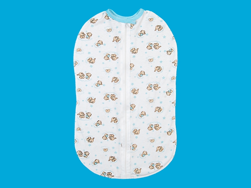 Пеленка - конверт (<<кокон>>) из тонкого трикотажного полотна (кулирка). Застежка - молния, не соприкасающаяся с телом ребенка, горловина обработана бейкой с застежкой на кнопку, не прилегающая к телу. Швы на лицевую сторону. Размер 51х29 см, на возраст от 0 до 3 месяцев.