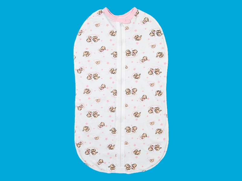 Пеленка - конверт (<<кокон>>) из тонкого трикотажного полотна (кулирка). Застежка - молния, не соприкасающаяся с телом ребенка, горловина обработана бейкой с застежкой на кнопку, не прилегающая к телу. Швы на лицевую сторону. Размер 51х29 см, на возраст от 0 до 3 месяцев.