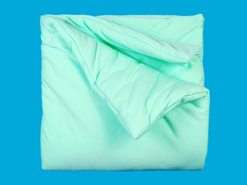 Одеяло детское выполнено из утепленного трикотажного полотна с начесом (футер), наполнитель-синтепон (три слоя). Размер 100х100 см.
