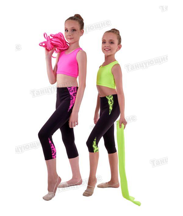 На моделях ( младшая - рост 137 см, размер 32, старшая- рост 150 см, размер 38), помимо бридж Эрида, также представлены топ с изящной вставкой на спине Антарес и принтованный топ Пульсар, идеально гармонирующий с вставками на бриджах.