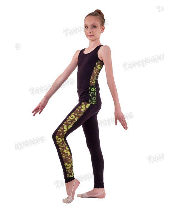 На модели ( рост 150, размер 38) помимо лосин <<Нерида>>, представлена майка из той же коллекции <<Нерида>>, идеально гармонирующая с лосинами.