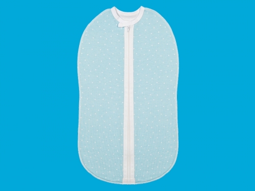 Пеленка - конверт () из утепленного трикотажного полотна с начесом (футер). Застежка - молния, не соприкасающаяся с телом ребенка, горловина обработана бейкой с застежкой на кнопку, не прилегающая к телу. Швы на лицевую сторону. Размер 51х29 см, на возраст от 0 до 3 месяцев