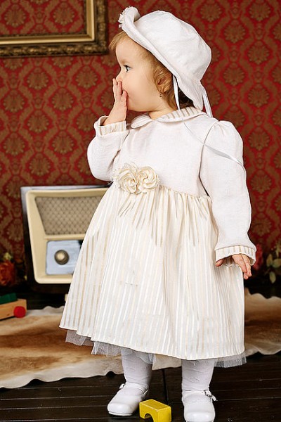 Комплект включает в себя: платье, брошь, регулируемая шляпка в комплекте до 86 р-ра.