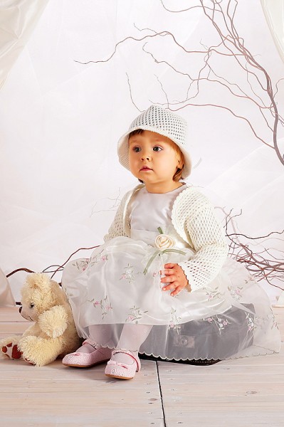 Комплект включает в себя: платье, болеро, регулируемая шляпка