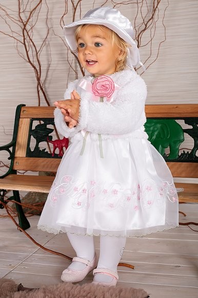 Комплект включает в себя: платье, болеро, регулируемая шляпка.