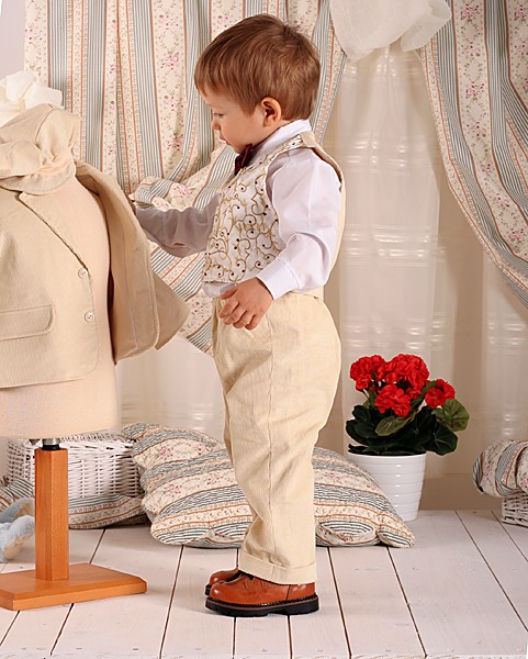 Комплект включает в себя: пиджак с подкладкой, жилет, брюки с манжетами, хлобчатобумажная рубашка, шляпа, галстук-бабочка. (шапочка идет в комплекте до 86 р-ра)