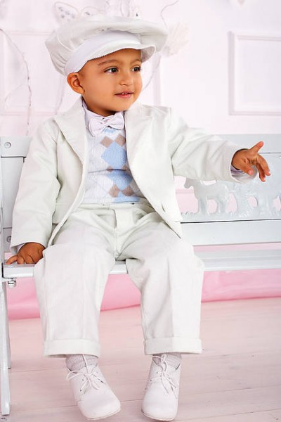 Комплект включает в себя: пиджак с подкладкой, жилет, брюки с манжетами, хлобчатобумажная рубашка , шляпа, галстук-бабочка.вельвет(шапочка идет в комплекте до 86 р-ра)