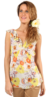 Длина 68 см в размере 38. Полупрозрачный шифон 100% полиэстера.